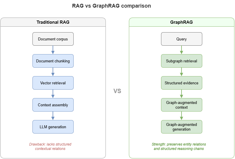 GraphRAG upgrades hybrid neuro-symbolic retrieval from “find material for the model” to “find structural evidence for the reasoner,” easing orchestration among solvers, rules, and LLMs over shared subgraphs rather than fuzzy text alone.