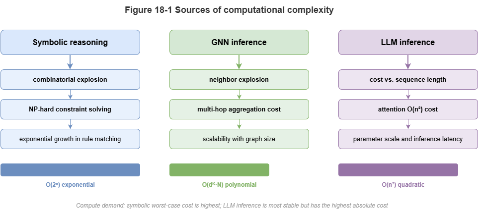 Figure 18-1: Three complexity sources—symbolic, GNN, LLM.
