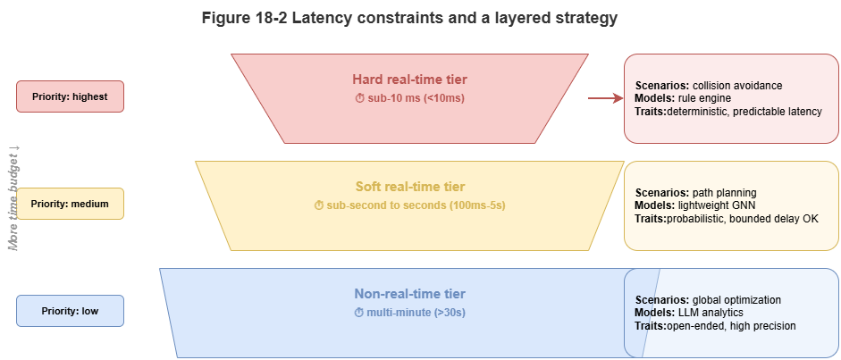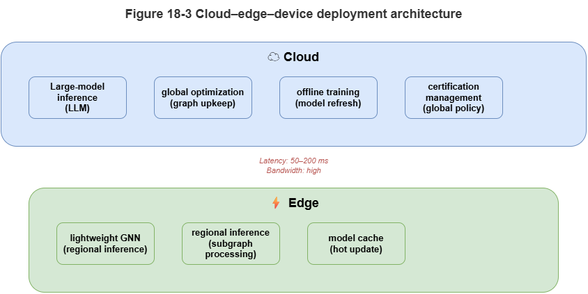 Figure 18-3: Tiered device–edge–cloud deployment and latency allocation.
