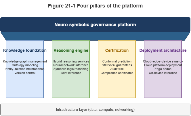 A complete neuro-symbolic trustworthy governance platform rests on four pillars: