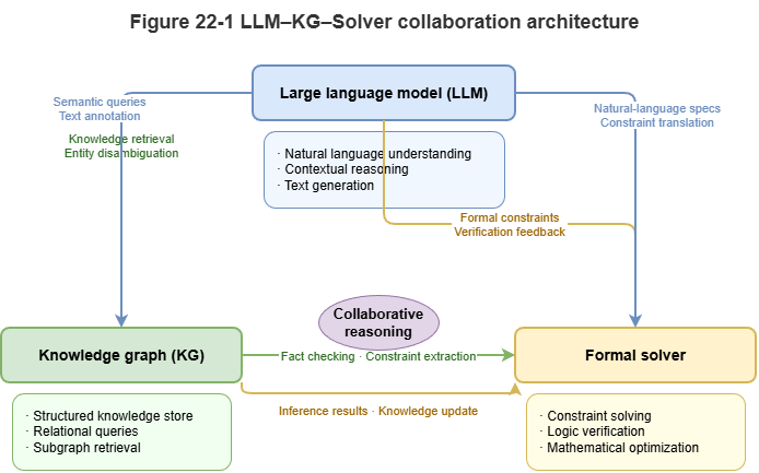 Fig. 22-1: Synergy among LLM, knowledge graph, and external solvers.