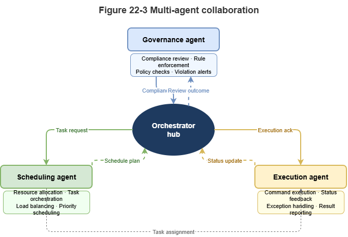 Fig. 22-3: Regulator, dispatcher, and executor agents in multi-agent negotiation.